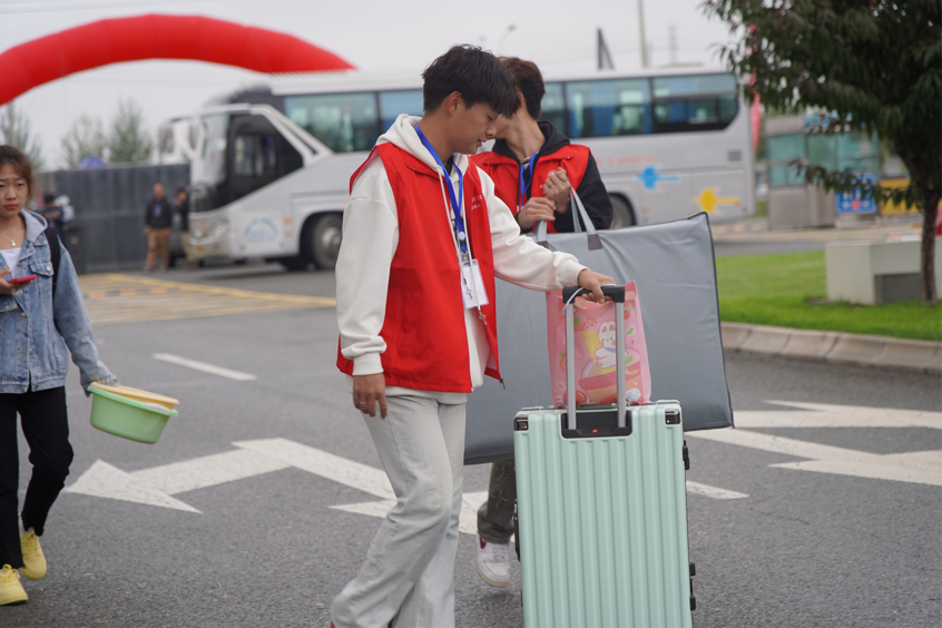 迎新现场,志愿者们身着统一服装,以饱满的热情和亲切的笑容迎接每一位新生的到来。他们耐心解答新生及家长的问题,细心协助办理报到手续,引导新生入住宿舍,并详细介绍学院的学习生活环境和各项规章制度。此外,学院还特别设置了失物招领处、咨询服务台,为新生提供全方位的帮助和支持,让他们感受到学院的关怀和温暖。