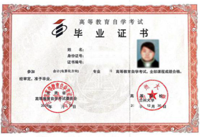 考生修完教学计划规定内容,成绩合格,达到学校毕业要求的,经考生本人申请,由甘肃省高等教育自学考试委员会颁发毕业证书,兰州大学、西北师范大学副署。符合主考院校学士学位授予标准的应届自考本科毕业生,经本人申请,学校审核,授予主考院校高等学历继续教育学士学位。