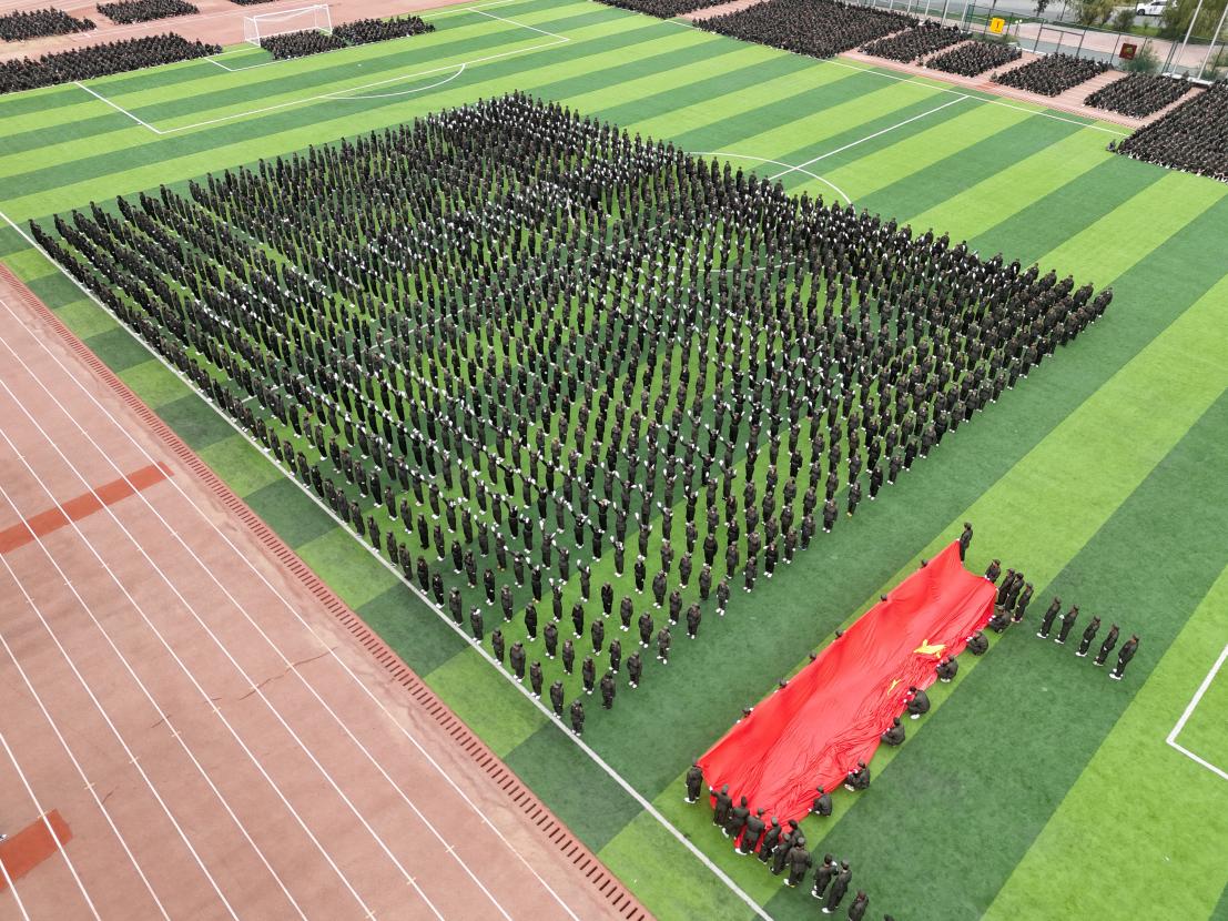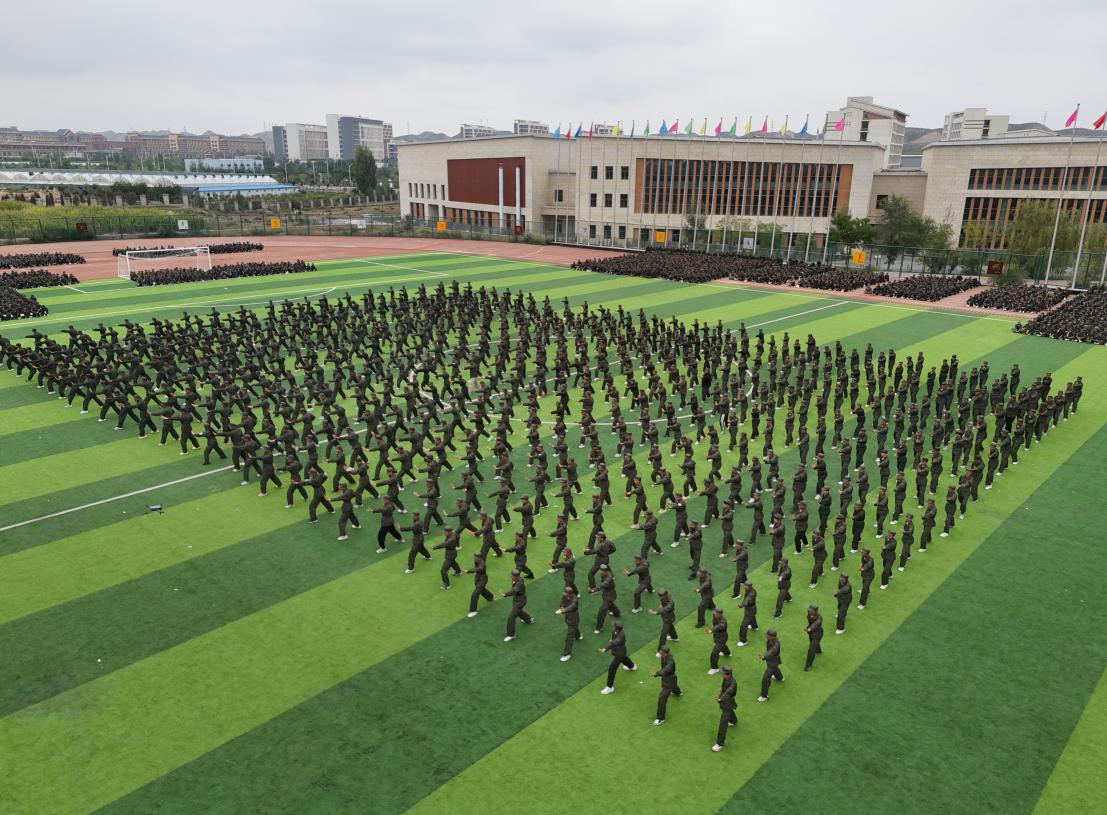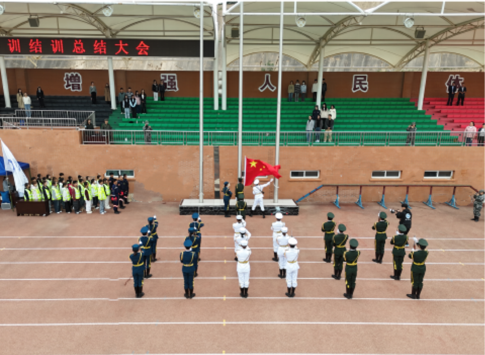 随着庄严的国歌声响起,全体师生肃立,大会正式拉开序幕。在兰现学子坚定喊出“开放包容 勤业思行”的校训声中,1500名参训学员开始方阵数字变化表演,庆祝新中国75周年华诞。接下来各营军训科目成果展示更是将大会推向高潮,各营队列展示,动作整齐划一,步履铿锵,展蓬勃朝气;匕首操,刀起,是飒爽;刀落,是坚定,一招一式皆是飒爽英姿;军体拳,一招一式,拳拳生风;韵律操,一动一静,尽显韵律之美。最后战术表演环节令全体参训学生热血沸腾,他们身着迷彩,手持模拟枪械,在场地中迅速穿梭、卧倒、匍匐前进,展现出顽强的斗志和团队协作精神,为军训增添了一抹亮丽色彩,也彰显了新时代青年的风采。