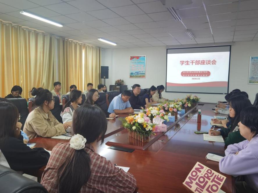 为深入贯彻学习习近平总书记关于调查研究的重要论述精神,传承弘扬“四下基层”优良作风,走好新时代党的群众路线,9月23日,教育艺术学院党总支书记王维忠、副院长贾晓东深入学生社区,与学生会干部代表共计30人进行座谈交流。座谈会就班级学风建设进展情况、宿舍安全管理现状以及对学生食堂服务的满意度等多个方面展开了热烈讨论。