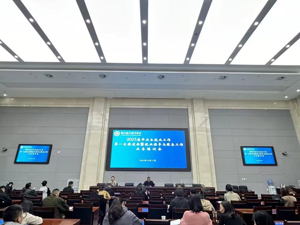 为全面贯彻落实党中央、国务院关于高校毕业生就业工作的决策部署,全方位提升就业工作队伍的业务能力和服务水平,确保2025届毕业生就业工作的顺利开展,学院招生就业处于10月12日下午在学院一楼报告厅召开2025届毕业生就业工作第一次推进会暨就业指导与服务工作业务培训会,学院招生就业部门负责人、各二级学院就业部门负责人、就业工作人员、辅导员及就业指导教师参加了此次会议。