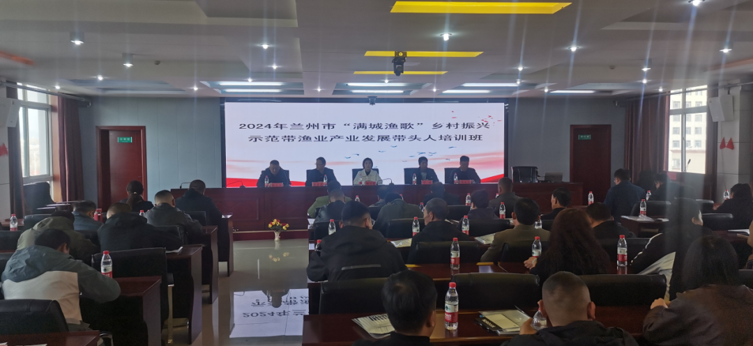 10月30日,由兰州市总工会、兰州市农业农村局主办,兰州市农广校、beat365中文官方网站、兰州市渔业技术推广中心、永登县水产工作站承办的2024年乡村振兴示范带产业发展带头人系列培训班开班,本次系列培训包含有10个培训班次500余人,此次是系列培训中的“满城渔歌”乡村振兴示范带渔业产业发展带头人培训,为培养一支能够“引领一方、带动一片、影响一批”的产业发展带头人人才队伍,打造乡村振兴生力军,激发乡村振兴活力。来自永登县的渔业养殖带头人及养殖大户50余人参加了开班式。