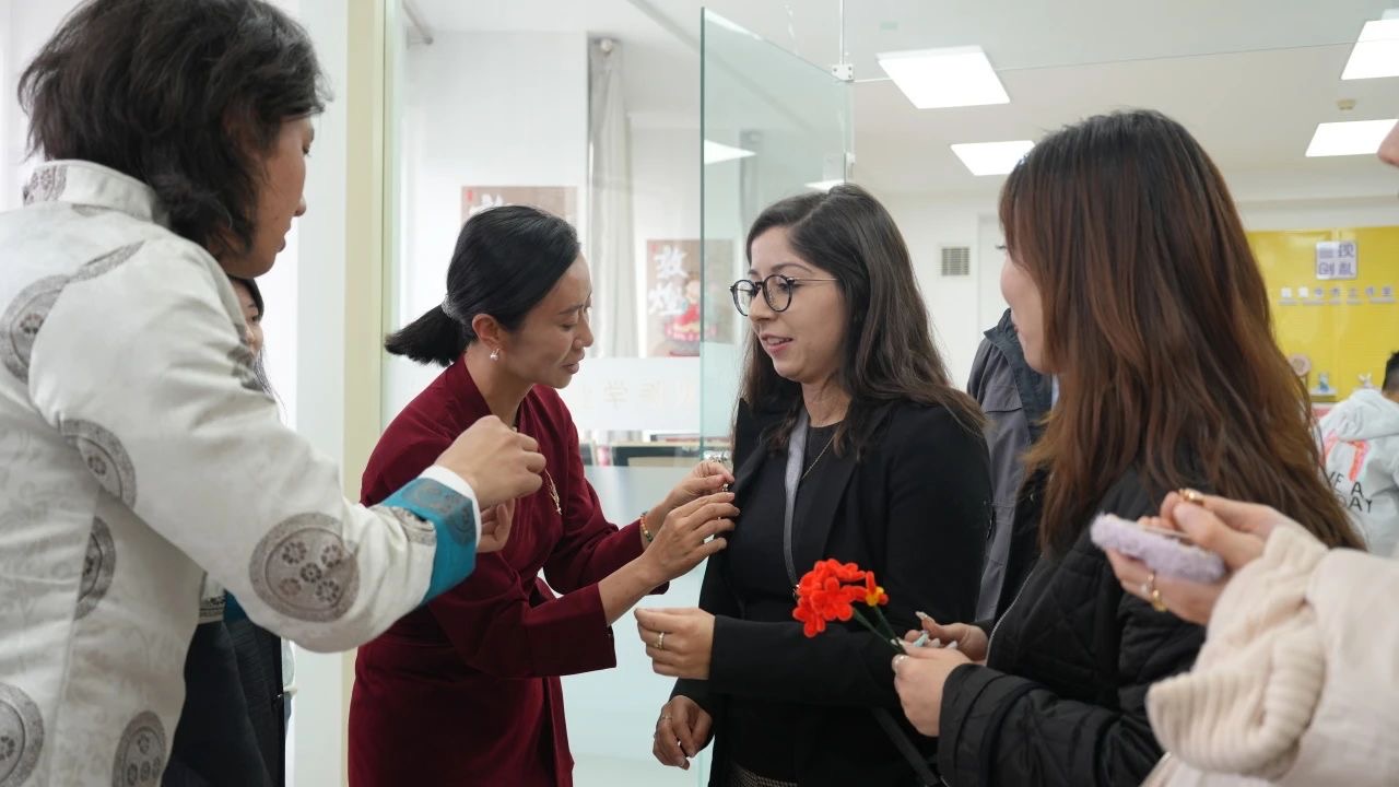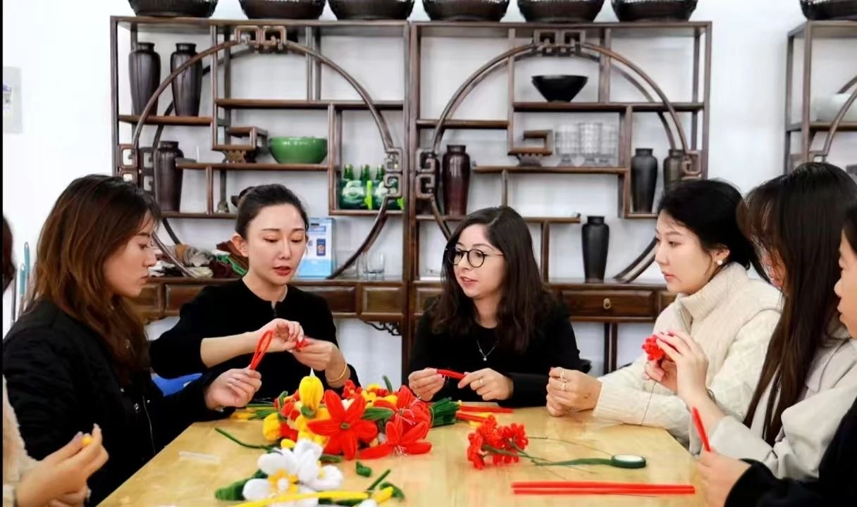 在农林科技学院花卉生产与花艺专业的课堂上,老师为代表团详细介绍了泉州簪花这一非物质文化遗产的独特魅力,包括其悠久历史、精湛工艺和高雅艺术风格。随后,老师组织代表团成员和同学们一起参与实践操作,在这个过程中,大家亲身体验到了中国传统花艺文化的魅力。