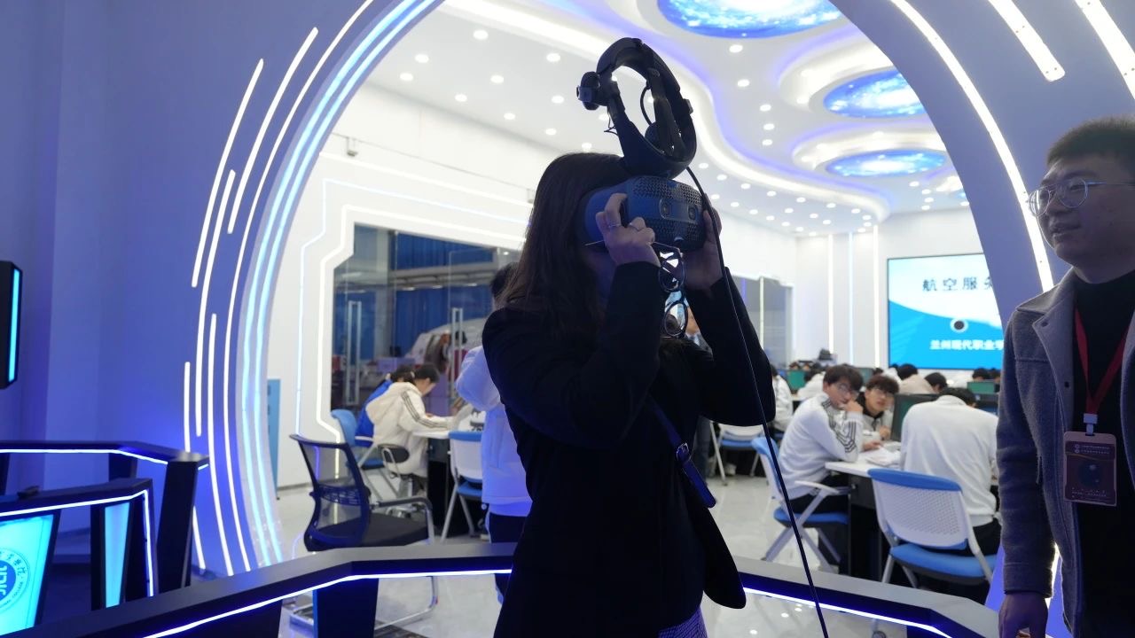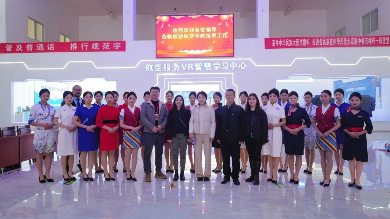 在旅游航空学院,院校代表教师介绍了学院在旅游管理和航空服务专业方面的实训教学模式,展示了航空模拟舱、旅游服务模拟场景等设施。学生展示了航空服务礼仪和旅游讲解技能,代表团代表深入了解了学院在培养旅游航空专业人才方面的特色。