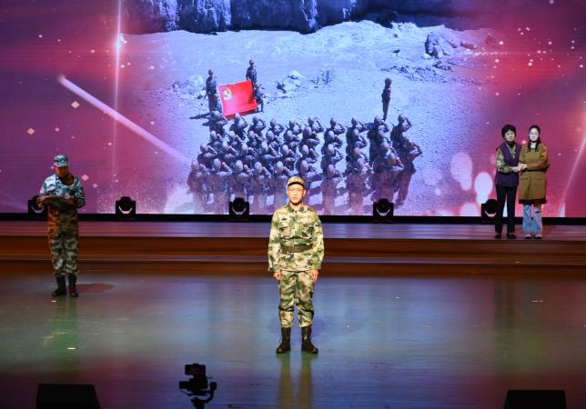 11月19日晚,学院2024年思政育人系列活动暨“高雅艺术进校园”第二场大型专业艺术展演活动在beat365中文官方网站图书馆礼堂隆重上演。此次展演的节目是由甘肃演艺集团话剧院创编的大型情景朗诵剧《信仰的力量》。由学院党委组织部、团委承办,学院党委领导、组织部、机关党委、团委、工会、二级学院党支部书记以及青马学员、团学干部、入党积极分子等代表750余人观看演出。