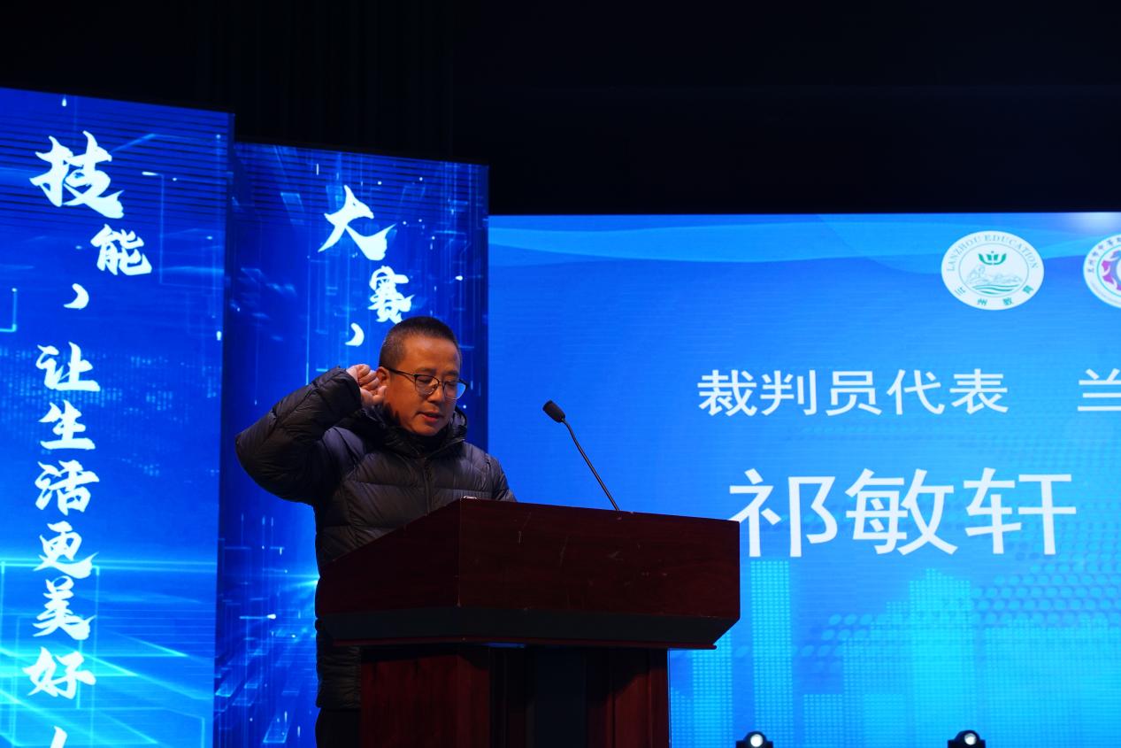 参赛选手代表兰州女子中等专业学校李佳莹、裁判员代表兰州文理学院艺术设计赛项裁判祁敏轩、监督仲裁代表兰州园艺学校赛点仲裁乔新军分别进行了宣誓,表示将严格遵守比赛规则,确保大赛公平、公正、有序进行。