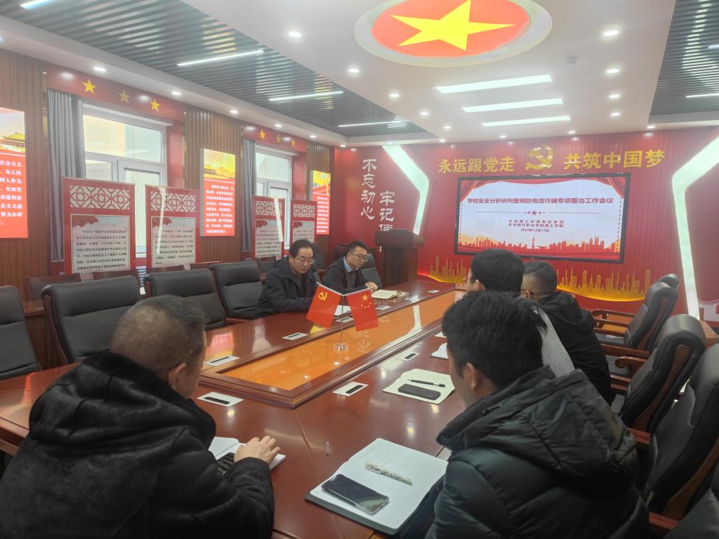 为进一步加强beat365师生的反诈意识,强化校园安全,建设和谐平安校园,从12月17日开始,理工学院召开校园防范电信网络诈骗专题系列会议。12月17日上午,在教学楼E中2009会议室召开“学校安全分析研判暨预防电信诈骗专项整治工作会议”,会议由综合办公室主任邓晶主持,马永新副院长及学生工作办公室相关成员参加了会议。会议内容是分析研判近期学生受损受伤受害现象发生的原因;讨论解决办法以及具体措施;以及加大校园安全宣传力度,营造反诈氛围。