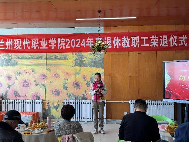 活动伊始,现场播放了退休教职工简介及工作历程。青丝转眼变白发,时光匆匆似流沙,随着轻柔的音乐声,现场每一位教职工无不为曾经奋斗过的事业感叹动容。退休教职工不仅是知识的传递者,更是价值观的塑造者,是学生们人生道路上的引路人。他们在职业教育的园地里辛勤耕耘,几十年如一日,用智慧和汗水浇灌着这片土地。他们的职业生涯,是学院发展的见证,也是职业教育进步的缩影。