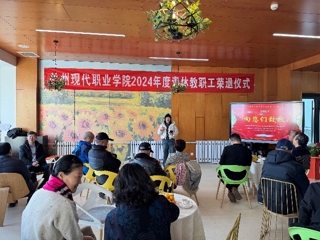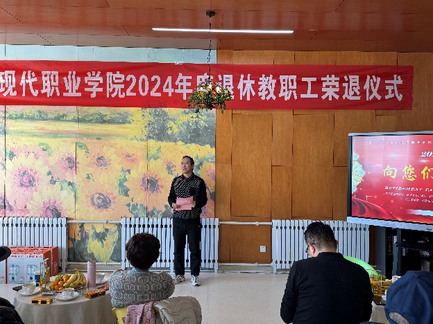 12月27日,学院在大学生活动中心双创中心举办2024年教职工荣誉退休仪式暨荣退人员座谈会。2024年度退休教职工、学院领导、二级学院负责人、工会负责人等参加会议。