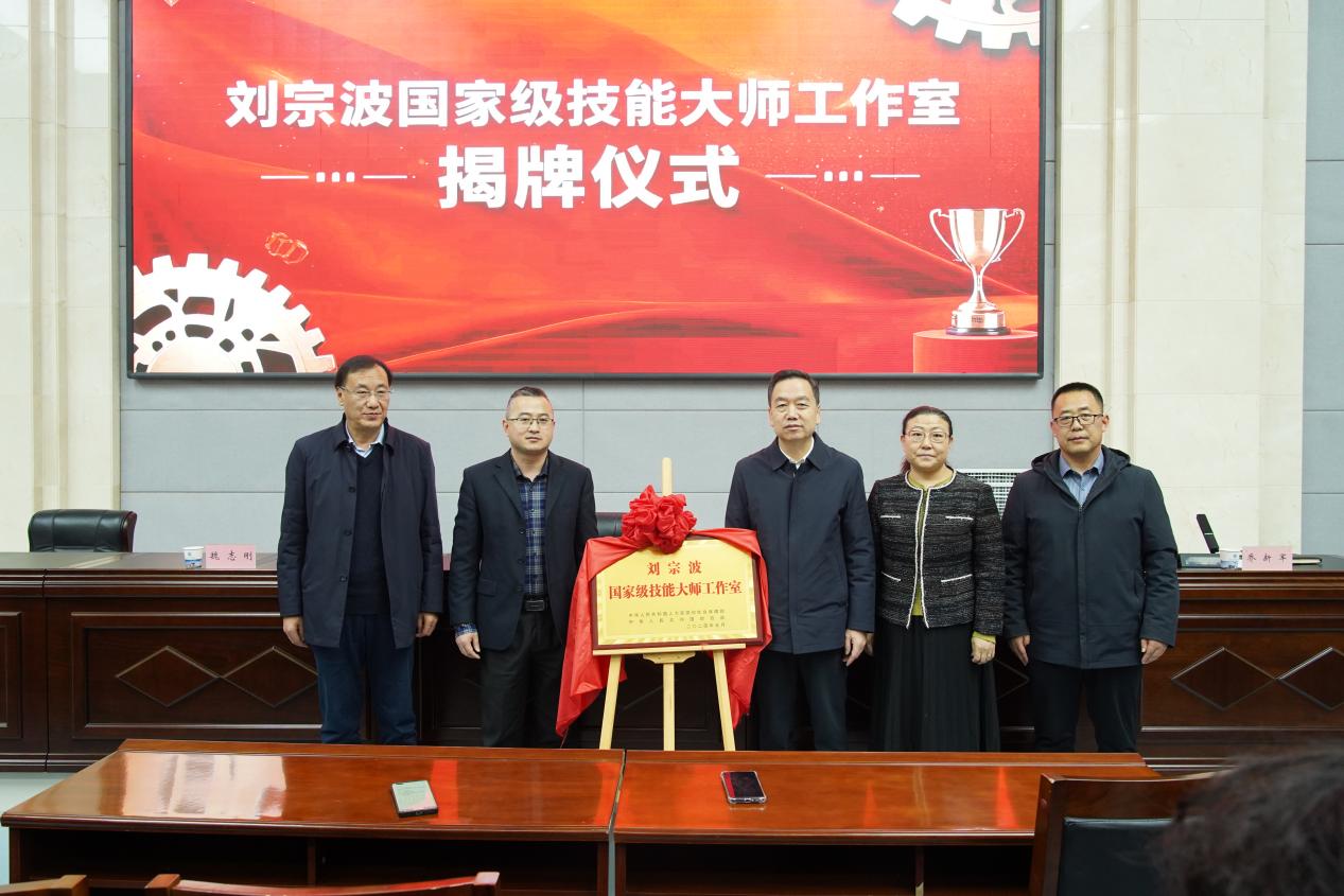 随后,学院党委书记曾乐强为“刘宗波国家级技能大师工作室”揭牌。