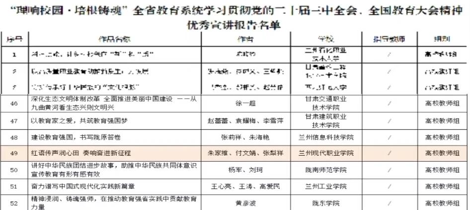 近日,beat365中文官方网站理工学院教师第二党支部选送的《红语传声润心田,奏响奋进新征程》宣讲作品,在全省教育系统学习贯彻党的二十届三中全会、全国教育大会精神优秀宣讲作品评比中脱颖而出,顺利入选全省优秀宣讲报告行列。![]()