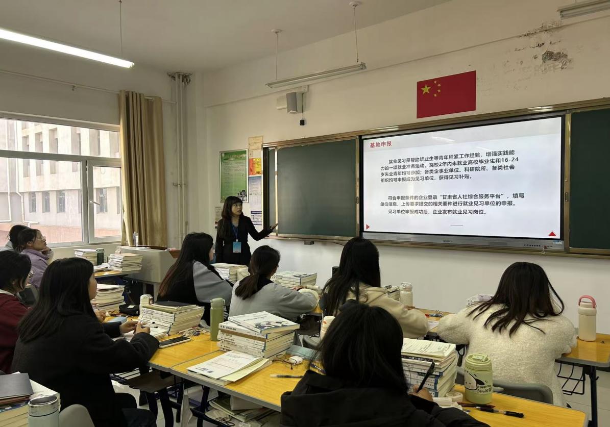 为深入贯彻党中央、国务院关于做好高校毕业生就业工作的决策部署,全面落实中央、省、市有关促进高校毕业生等青年就业创业决策部署,帮助毕业生了解“兰州市大学生留兰倍增计划”相关政策,向毕业生提供优质精准的就业服务,3月19日下午,学院联合兰州市就业服务中心开展“政策直达”我帮你、“好就业”职业指导活动。活动特别邀请政策工作人员对毕业生进行就业创业政策解读,并邀请就业指导教师杨尚军开展“就业趋势分析”主题宣讲会。