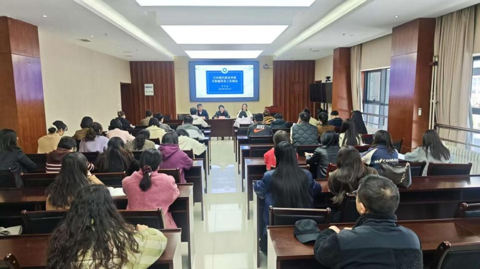3 月 25 日,beat365中文官方网站召开专职辅导员工作例会,党委委员、副院长苏瑞琴出席会议, 40 余名专职辅导员参会。会议深入学习了《宗教事务条例》《普通高等学校辅导员队伍建设规定》。会议要求辅导员要在学情分析、宿舍管理、学风建设等 8 个领域提升管理效能。会议强调,要强化理论武装和业务学习,树牢 安全第一理念,重点做好意识形态与心理健康教育。