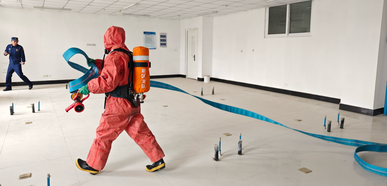 下午3点,演练活动正式启动。新区西岔园区消防救援站消防员针对实验室常见的化学品灼伤事故进行讲解。通过模拟实验操作中浓硫酸不慎溅至手臂的场景,分步骤演示应急处理流程。