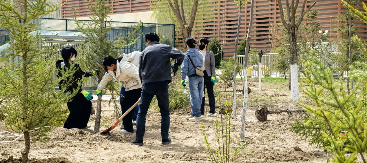 下午两点半,70余名教职工早早来到现场,各自带着铁锹等工具来到自己的任务区开始植树。活动现场,挥锹铲土、扶苗填坑……大家或两人一组,或三五成群,各司其职、干劲十足,合力栽下了一株株树苗。新栽的树苗迎着春风舒展枝叶,宛如新生的希望,为 “美丽校园” 建设添上浓墨重彩的一笔。