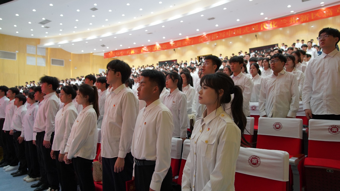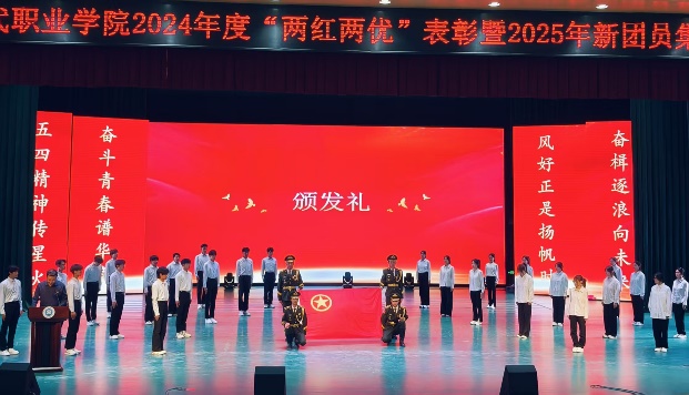 在2025年新团员入团仪式上,首先宣读了新发展团员名单,各二级学院团总支书记向新团员代表郑重颁发团徽和团员证,新团员们整齐列队,面向团旗庄严宣誓。随后,新团员代表的发言以饱满的热情表达了对加入共青团的崇高理想与坚定信念,字里行间洋溢着新时代青年的蓬勃朝气。优秀团员代表结合自身成长经历,分享了在团组织引领下的收获与感悟。