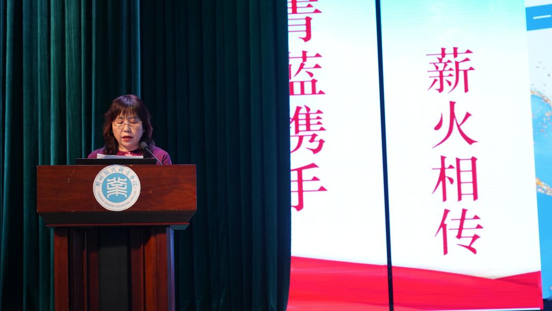 随后,学院为提前结业教师颁发结业证书,这不仅是对结业教师学习成果的认可,也是对他们未来教学工作的激励。接着,学院副院长杨巧玉宣读了2025 年青年教师师徒结对名单,现场举行了隆重的拜师仪式,每位青年教师都为自己的师傅献上了花束。新一批的青年教师将在经验丰富的导师指导下,开启专业成长的新征程。