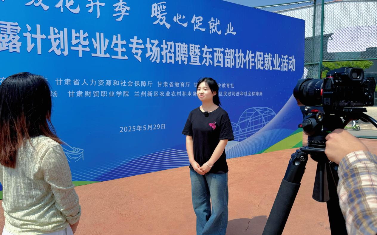 招聘活动现场氛围热烈,兰现学子积极与用人单位交流,详细了解用人单位的发展前景、岗位要求、工作内容及薪资福利待遇等信息。招聘人员耐心解答,积极展现企业文化,介绍行业前景和发展状况,提供职业规划建议。期间,学院毕业生王冰霞接受了兰州新区报的采访,分享了自己在现场的求职情况。