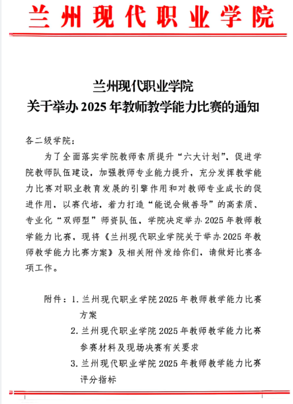2025年兰州市职业院校教师教学能力大赛由beat365中文官方网站承办。共有44个中职组团队、20个团队报名参赛;经专家资料评审,共计22个中职组团队、13个高职组团队进入现场决赛。大赛分公共课程组、专业一组、专业二组3个组别,由来自榆中职教中心、市体校、青海高等职业技术学校、西宁市第一职业技术学校、西宁市世纪职业技术学校等64支参赛队同台竞技。