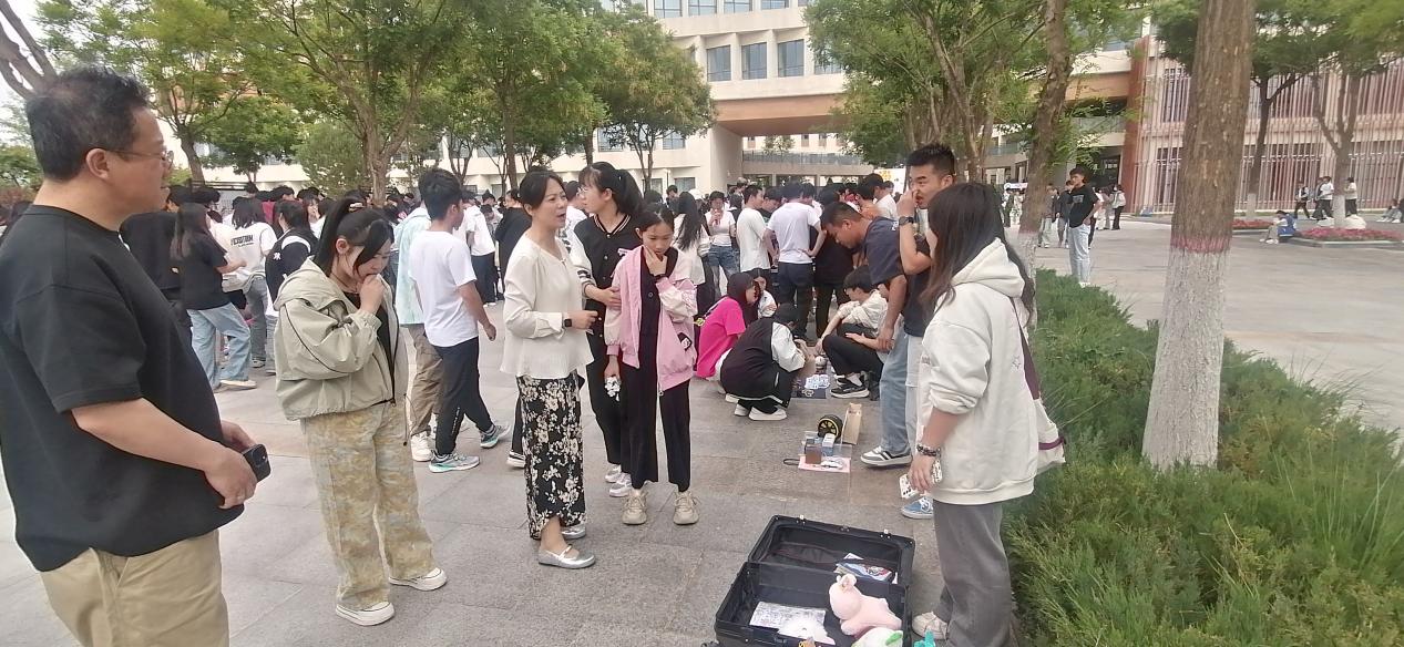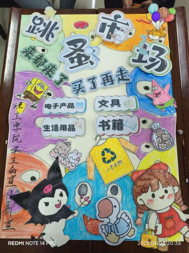 活动以物为媒,在校园里搭建起资源循环与情感共鸣的双重平台。活动当天,摊主们早早来到现场,精心布置自己的小天地 ,随着第一批"淘宝"同学的到来 ,“转转”集市正式拉开帷幕。同学们摇身变为 “小老板”,热情洋溢地招揽顾客,吆喝声此起彼伏。本次活动亮点纷呈,市集汇集了各式各样的闲置物品,书籍带着墨香流转、文创用品,精巧实用 ,承载着无数校园生活的回忆、复古小物承载时光故事,每一件物品都在等待新的主人 ,继续书写它们的故事 。同学们穿梭于琳琅满目的展位前,或驻足品鉴旧物故事,或与摊主协商议价。