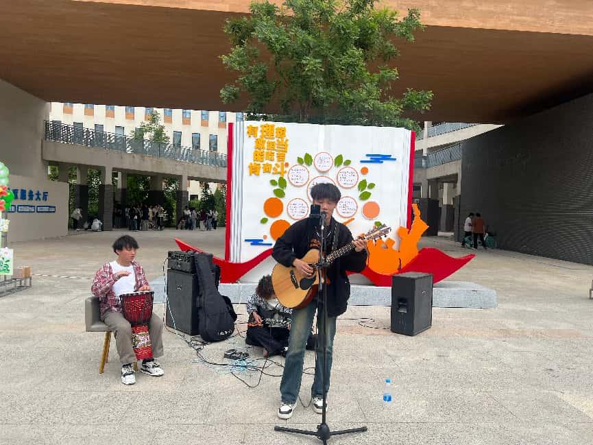市集设置特别环节,“音乐地带”社团带来的现场演出让集市中央瞬间变身“小型演唱会”,全场瞩目的才艺秀闪亮登场瞬间将整场活动氛围活跃起来。活力独舞、合唱独唱热门歌曲轮番上演点燃了现场观众的热情欢呼声、掌声交织回荡每个人都沉浸地享受着音乐的魅力。