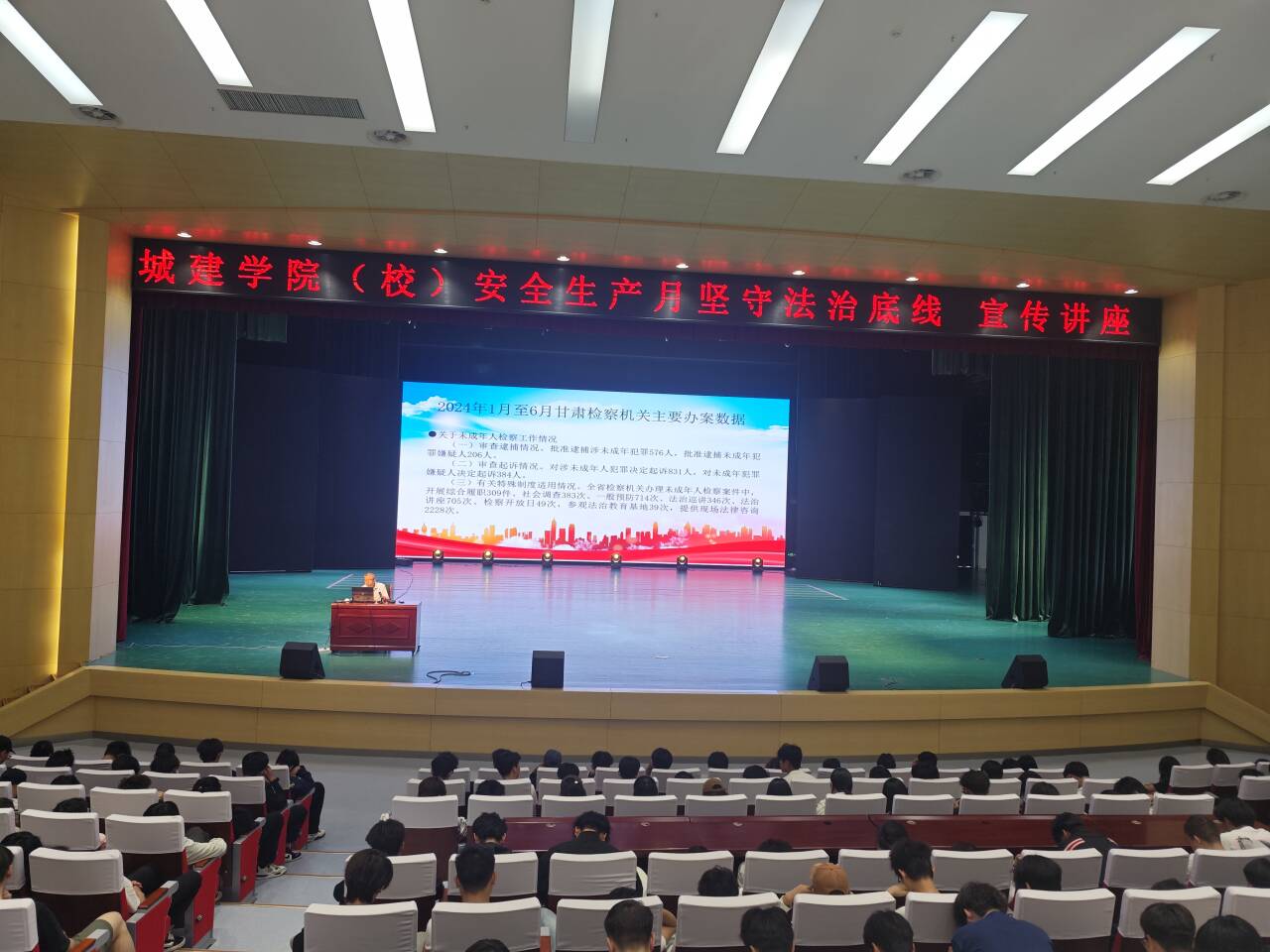 6 月 17 日,城市建设学院开展安全生产月法治讲座,马宝林老师以全国及甘肃大学生犯罪案例为引,解析盗窃、诈骗等犯罪类型,警示电信诈骗、租车陷阱等风险,强调以法治教育守护平安校园。