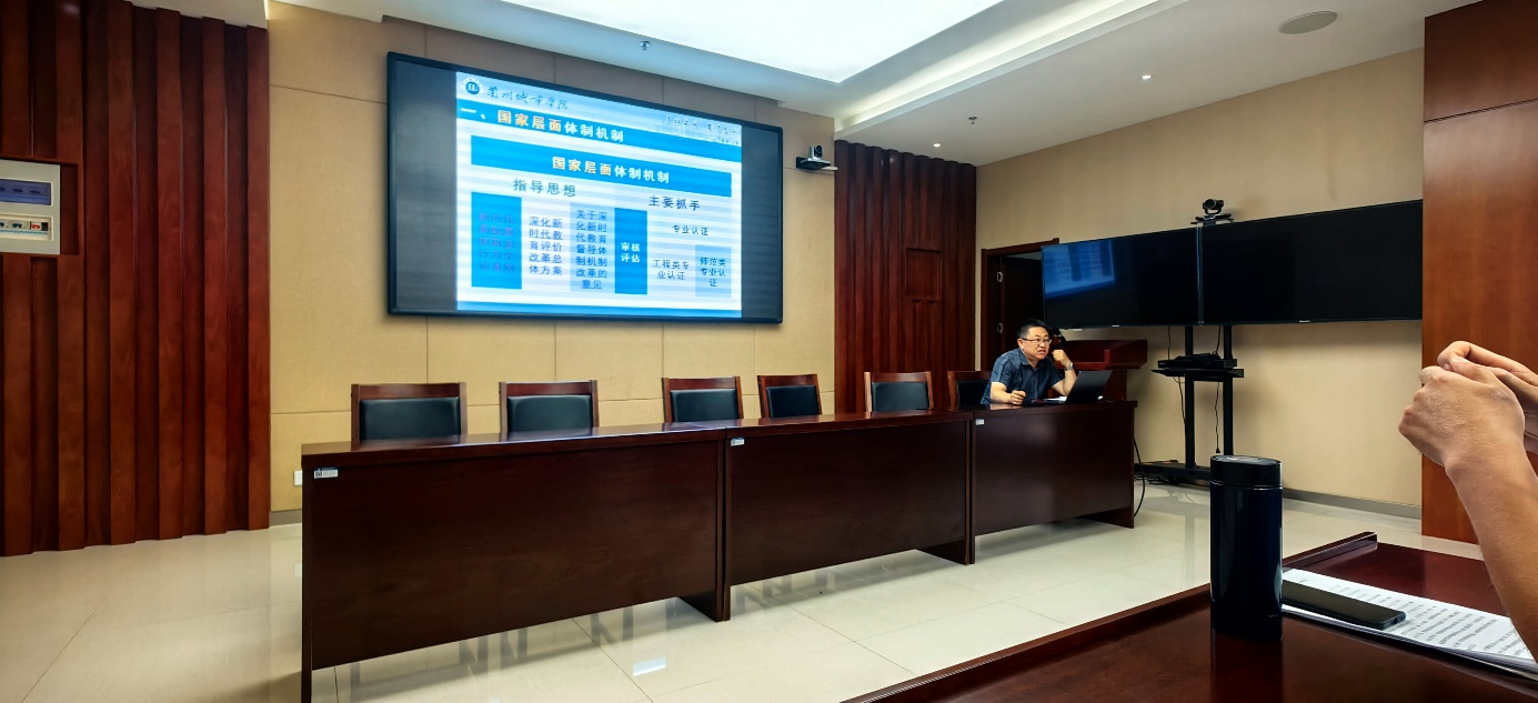教学副院长徐刚做了题为《规范本科教学,加强质量监控,提升教学质量》的专题讲座,解读本科教学规范与质量监控体系,指出教学过程是基础,质量是生命线,需强化全流程管理保障教学成效。
