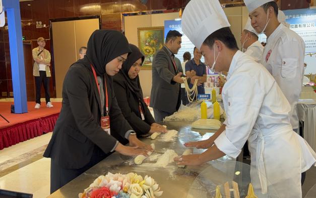 学院作为活动的重要参与者,师生在文化展示区展现非遗魅力:面塑作品栩栩如生尽显中华饮食文化底蕴;牛肉拉面制作全流程演示,将国家级非遗技艺精髓呈现,展演吸引多国嘉宾驻足。