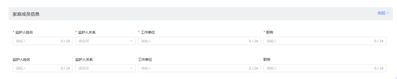 3.家庭成员信息:考生必须至少填写一位家庭成员,如果考生是由除直系亲属以外监护人管理,在“称谓”栏请选择“其他”,并填写监护人信息。
