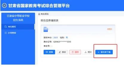 (二)信息填报完成点击“返回”,点击“报名表下载”。报考信息填报合适后,点击“提交”。
