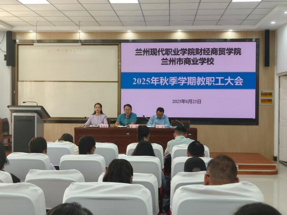 8月23日,城市建设学院、财经商贸学院(兰州市商业学校)分别召开秋季开学工作会。财经商贸学院会议明确“以教学质量为核心” 原则,细化分工,强调实训安全与教学常规管理,补充开学初衔接任务,为新学期教学有序开展奠定基础。