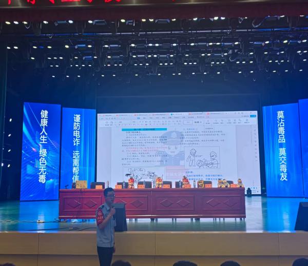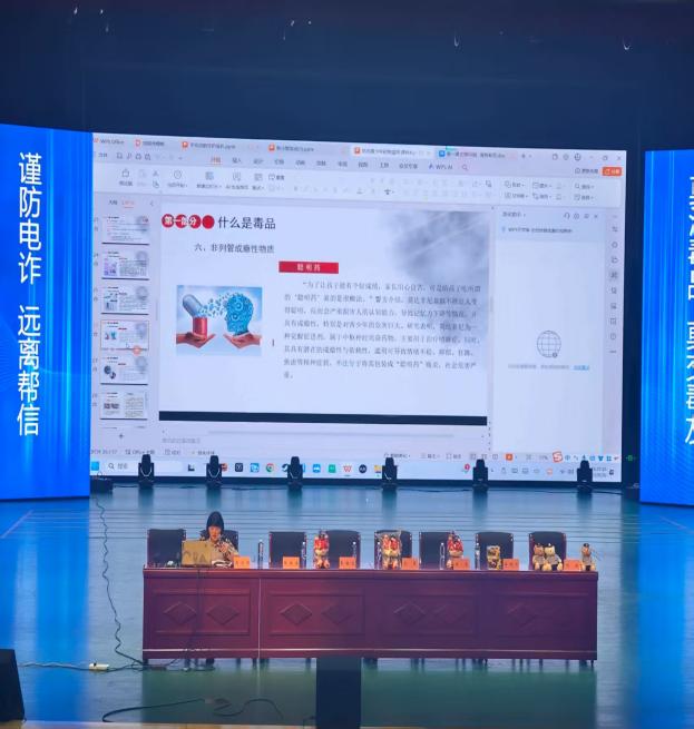 此次讲座活动精心设计了多个与学生日常生活密切相关的主题板块,重点围绕交通安全法规知识普及、防范电信网络诈骗技巧讲解、毒品危害警示教育以及校园欺凌预防措施等四大核心内容展开深入浅出的讲解。宣讲团成员通过典型案例分析、警示视频播放、情景模拟、互动问答领取奖品等多种形式,使普法教育更加贴近学生实际需求,让学生在轻松愉快的氛围中掌握了法律知识,提升了自我保护意识。使学生不仅加深了对法律法规的理解,还学会了如何运用法律武器维护自身权益。通过这种寓教于乐的方式,法治观念悄然扎根于学生心中,为构建和谐校园奠定了坚实基础。