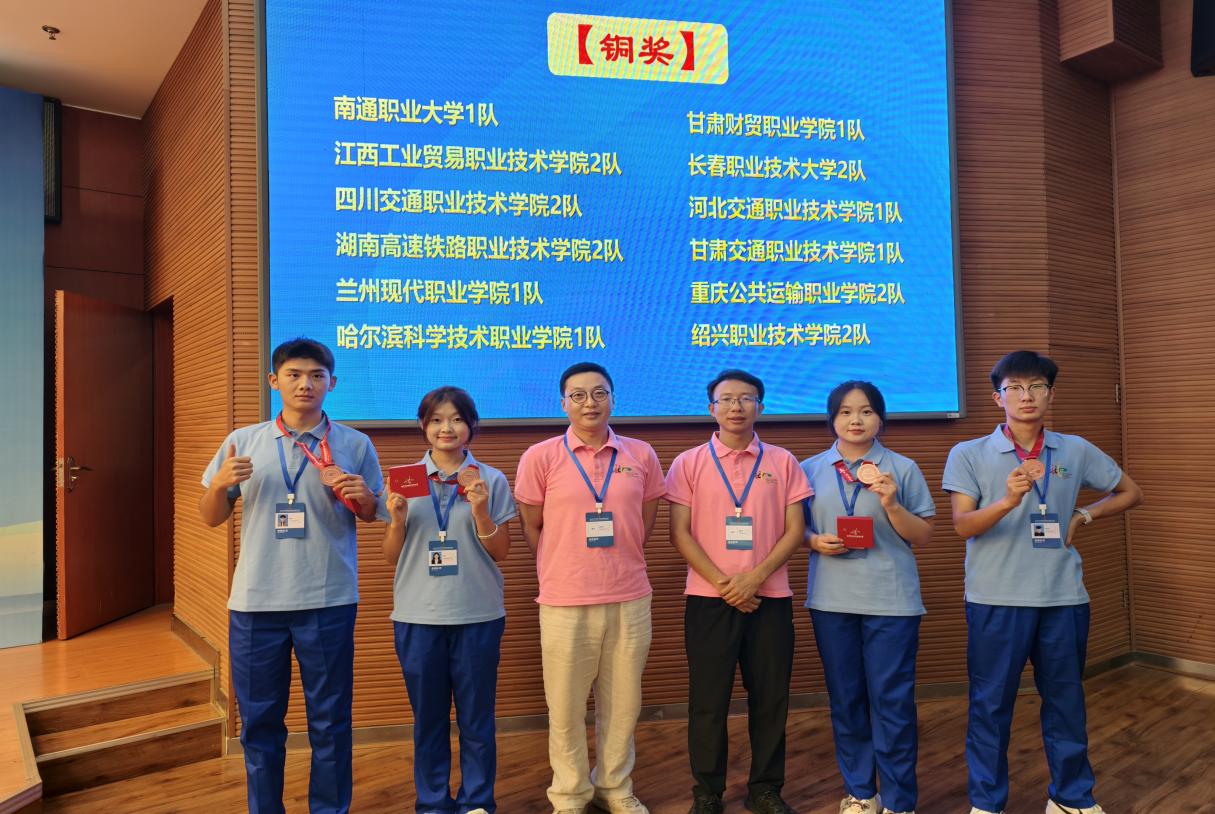 8 月 29 日,轨道交通运输赛道(高职组)赛事在湖南铁道职业技术学院(铁科校区)开赛,全国 40 支队伍同台竞技。学院张国伟、高立明等教师组成指导团队,张婧、刘玥、姚中兵、袁喆4名学生凭借扎实专业素养与高效团队协作,沉着应战摘得铜牌。