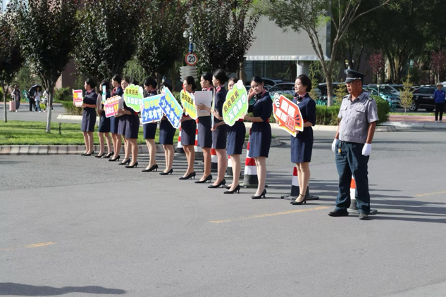 航空专业学姐手持欢迎牌迎接新生
