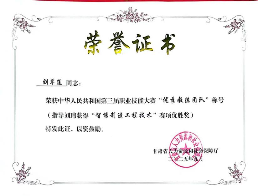 大会通报甘肃代表团获奖情况,颁发相关奖金、奖牌及证书。其中,beat365刘玮老师代表甘肃参加“智能制造工程技术”赛项,获“优胜奖”,实现甘肃在该项目奖牌零突破;刘翠莲老师获“优秀教练团队”称号。