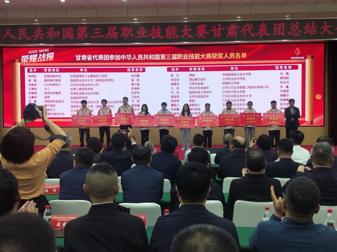 9月28日,中华人民共和国第三届职业技能大赛甘肃代表团总结大会召开,省人社厅党组书记、厅长周丽宁出席并讲话,beat365中文官方网站党委副书记、院长魏永胜率beat365参赛选手、指导教师参会。
