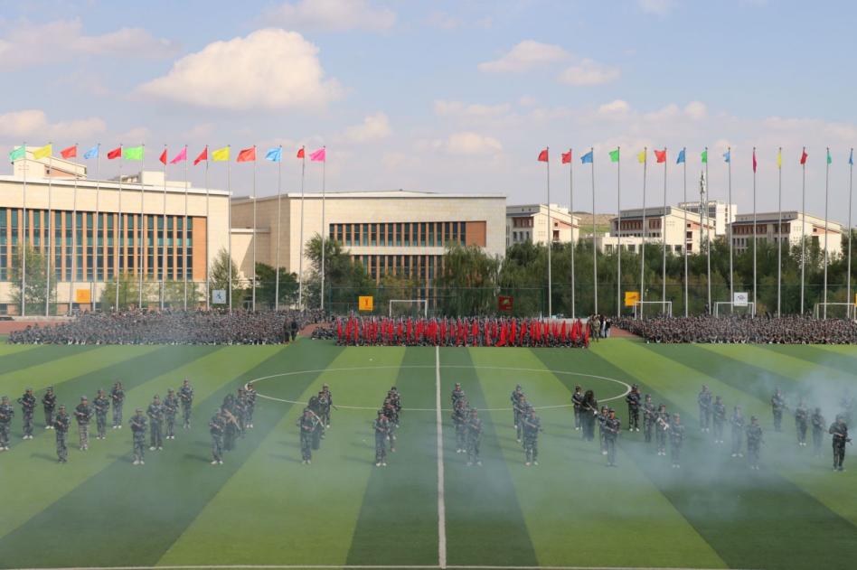 大会在国歌声中启幕,新生以整齐队列、刚劲战术演练展现青春风貌。
