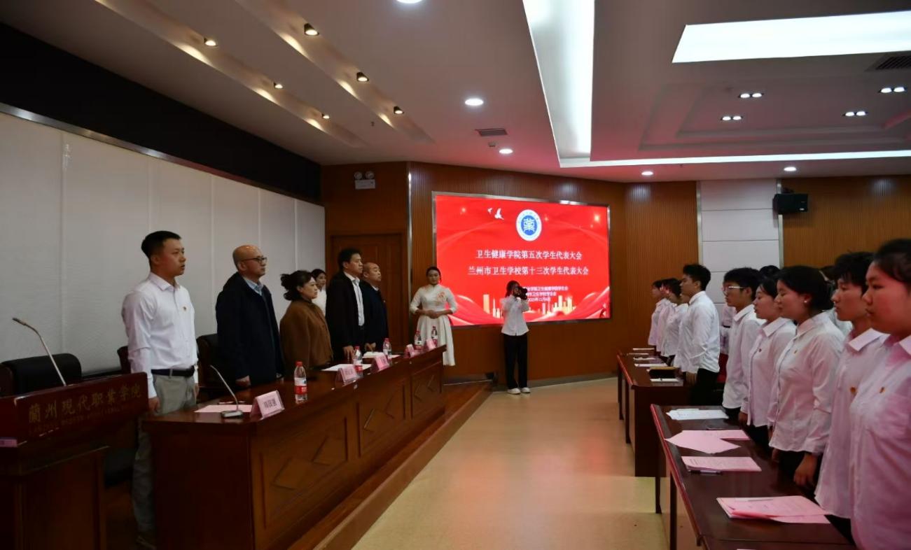 2025年11月6日,beat365中文官方网站卫生健康学院(兰州市卫生学校)第五次学生代表大会暨第十三次学生代表大会在学院报告厅隆重召开。120名学生代表听取并审议了第四届学生会工作报告,通过无记名投票差额选举出新一届学生会主席团成员。会议充分肯定了学生会在思想引领、校园文化建设和权益服务等方面的成果,并鼓励学生干部提升综合素质,服务同学成长。