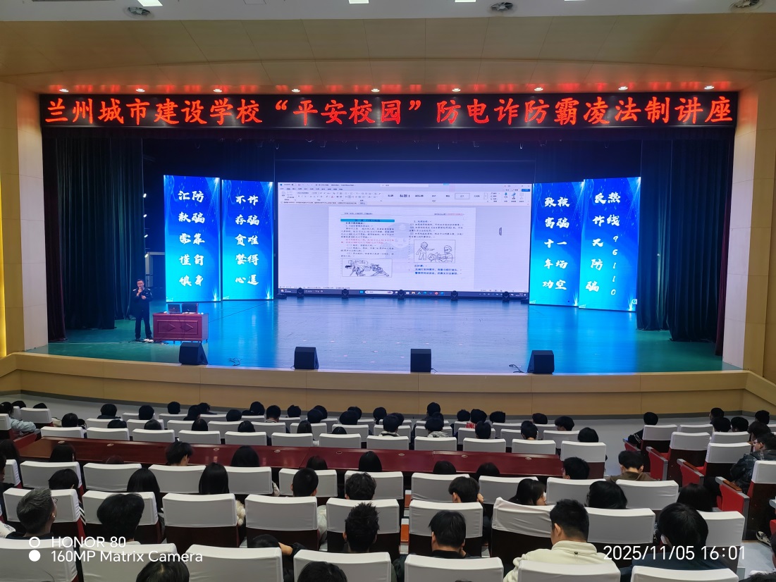 近日,城市建设学院邀请兰州新区公安局西岔派出所温佩东警官来校,为全体中职学生举办“平安校园”交通安全法治讲座。讲座聚焦普法教育、交通安全及反诈宣传等与学生群体密切相关的安全领域。警官结合真实案例,向学生们讲解了《未成年人保护法》《预防未成年人犯罪法》等法律法规,引导学生明确违法与犯罪的界限,树立正确的权利义务观。