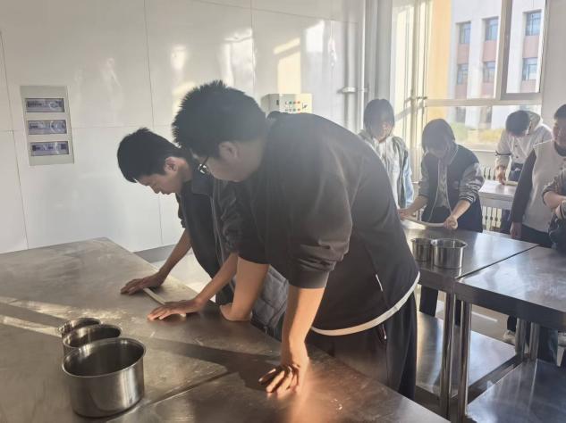 为推进烹饪工艺与营养高水平专业群建设,融合地方非遗文化与专业技能培养,财经商贸学院牛肉面社团首期培训11月4日启动。160余名跨专业学员分5班参训,首周聚焦和面、揉面等基础工艺,老师理论讲解结合手把手实操指导。此次培训夯实 “第二课堂” 育人根基,为技艺传承与技能竞赛打基础。