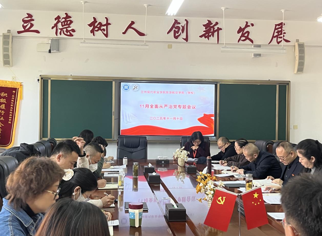 近日,旅游航空学院党总支召开11月全面从严治党专题会议,学院各级管理干部及各支部书记参会。会议落实“第一议题”制度,领学相关核心内容,明确高校全面从严治党政治责任,从政治方向、责任落实等四方面部署工作,为学院高质量发展筑牢政治根基。
