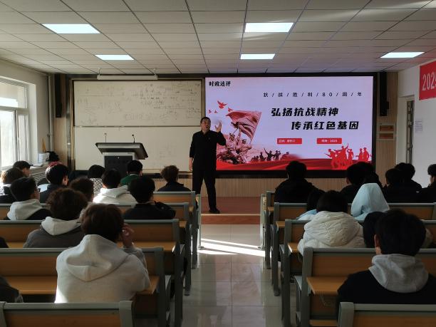 近日,城市建设学院党总支委员、副校长成作霖以“弘扬抗战精神 传承红色基因”为题,为100余名学生讲授专题思政课。课程回顾抗战历程、诠释抗战精神内涵,勉励学生将个人理想融入国家大局,同学们表示将铭记历史、锤炼本领,做红色基因传承者。