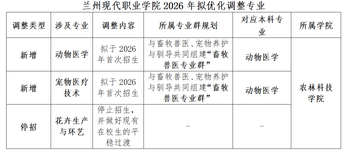 农林科技学院紧扣省市职业教育与农业产业发展规划,锚定都市现代农业需求优化专业结构。2026年拟新增动物医学、宠物医疗技术专业,组建畜牧兽医专业群,停招花卉生产与环艺专业。此次调整将助力高素质技术技能人才培养,赋能学院长远发展。