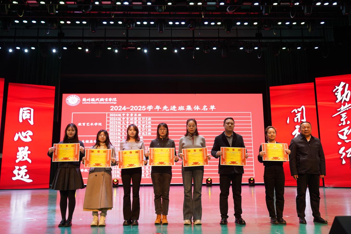 表彰环节高潮迭起,掌声不断。学院党委书记曾乐强为省职业院校技能大赛班主任能力大赛获奖教师颁奖;党委副书记、院长魏永胜为“首批院级辅导员、班主任工作室主持人”授牌;党委副书记、副院长王茂昌为先进班集体获奖代表颁奖。学院党委委员、副院长杨巧玉、苏瑞琴分别为国家奖学金、国家励志奖学金获奖学生代表颁奖;各二级学院负责人为 “三好学生”“优秀学生干部”“文明宿舍” 获奖代表颁奖。