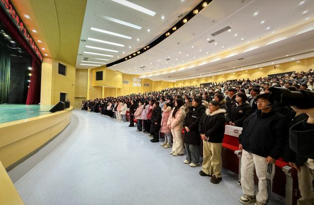 大会在科技感与青春活力兼具的开场舞蹈《AI你我》中拉开序幕,全体参会人员起立奏唱国歌,庄严的旋律传递出师生们的爱国情怀与奋进之志。