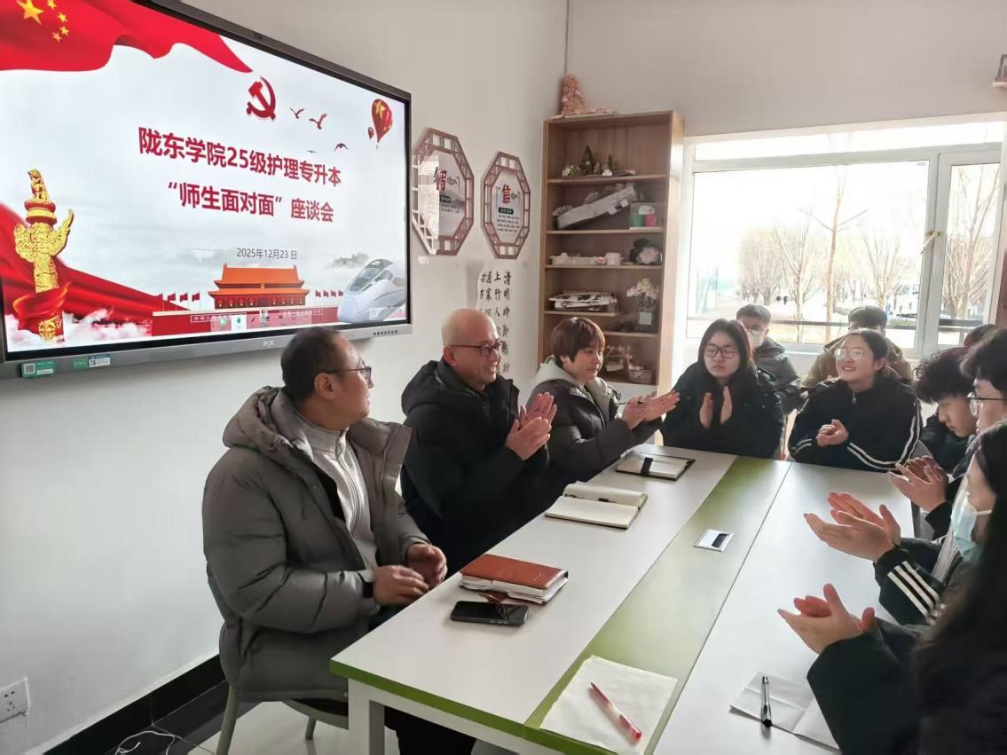 近日,卫生健康学院副院长与陇东学院2025级护理学专升本学生代表开展“师生面对面”座谈会。座谈会上,学生围绕学业、生活与发展建言献策,院领导现场回应诉求,强调筑牢安全防线、端正学业态度、科学规划考研方向。